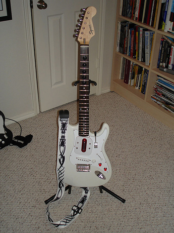 Noviembre de 2005. A los "tipos" de Harmonix Music Systems no se les ocurre otra cosa que sacar un videojuego para PlayStation2 con un nuevo periférico, una "guitarra". El juego en cuestión consiste en ir pulsando los botones del mastil de la guitarra de plástico malo, según te vayan saliendo los colores en la pantalla. Total nada XD. El modelo de guitarra elegido para esta revolución en el mundo de las videoconsolas no es otro que una Gibson SG (Utilizada por artistas como Robby Krieger(uno de los primeros en ocuparla) de The Doors, Angus Young, George Harrison, Eric Clapton en Cream , Tony Iommi y Jimi Hendrix en el "Dick Cavett Show"). En 2006 se estrenó una secuela (Guitar Hero II) para PlayStation 2 y Xbox 360.
